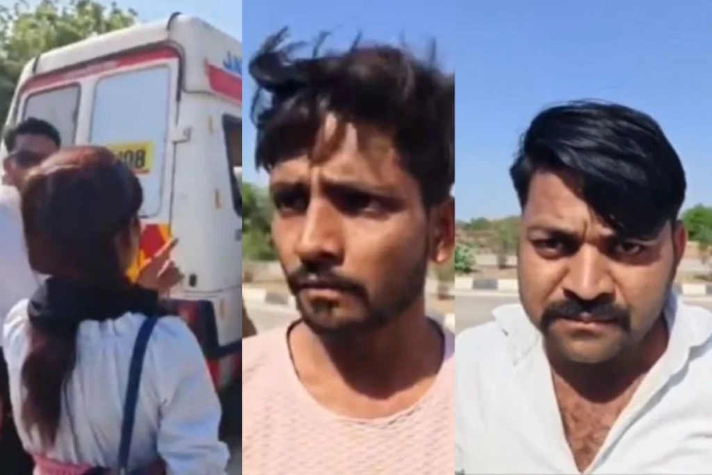 ‘एंबुलेंस बनी चलता फिरता होटल। राहगीरों ने एंबुलेंस की विंडो से देखी गलत हरकत है, जिसके बाद लोगों ने कियापीछा। तकरीबन 5 किलोमीटर बाद एक लड़की और दो लड़कों को पकड़ा गया।