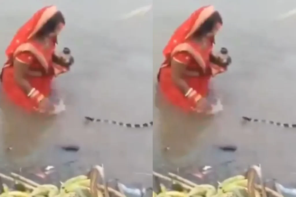 Viral Video: छठ पूजा (Chhath Puja 2024) का पर्व 8 नवंबर को बहुत ही धूम-धाम से संपन्न हुआ। ये त्योहार यूपी और बिहार में विशेष रुप से मनाया जाता है। इसमें महिलाएं बच्चे के लिए 36 घंटे तक निर्जल व्रत रखती हैं और सुबह-शाम भगवान सूर्य की पूजा करती हैं। इसी छठ पूजा से जुड़ा हुआ एक Viral Video इंटरनेट पर काफी तेजी से फैल रहा है। दरअसल, छठ पर महिलाएं भगवान सूर्य की पूजा करने के लिए मौजूद हैं, वह पानी में खड़ी हैं लेकिन तभी वहां पर अचानक से एक बड़ा सा काला लंबा सांप आ जाता है। इसे देख वहां पर मौजूद अन्य महिलाएं भागने लग जाती हैं। लेकिन एक महिला खड़ी रहती है और कुछ ऐसा कर देती है जो कि, वायरल हो जाता है।