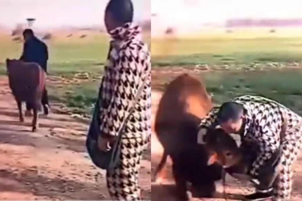 इस वायरल वीडियो को Tehxi नाम के एक्स हैंडल से पोस्ट किया गया है। वीडियो में देखा जा सकता है कि, एक गाय को उसका मालिक दो लोगों को बेच देता है।