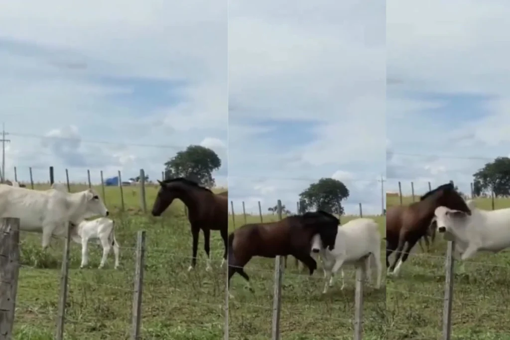 Viral Video: घोड़े की स्पीड और ताकत से तो हम सभी वाकिफ हैं। लेकिन क्या कभी आपने इस पावरफुल जानवर को चित होते हुए देखा है? अगर नहीं तो इस वायरल वीडियो में देख लीजिए। दरअसल, Social Media पर एक वीडियो वायरल हो रहा है। इसमें एक गौ माता ताकतवर जानवर पर भारी पड़ती हुई दिख रही हैं। गाय को घोड़े पर इसलिए गुस्सा आ जाता है क्योंकि वह उसके बच्चे की तरफ बढ़ रहा होता है। इसके बाद गाय घोड़े का वो हाल करती है, जिसे देखने के बाद आपको अपनी आंखों पर यकीन नहीं होगा।
