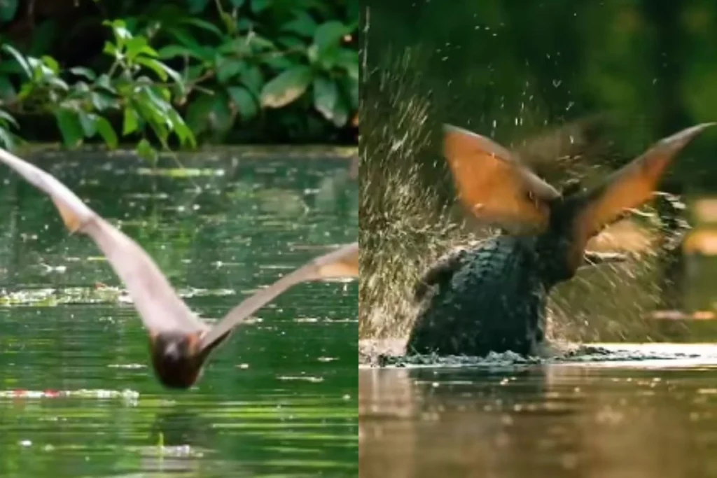 मगरमच्छ ने हैरतअंगेज तरीके से किया चमगादड़ों का शिकार