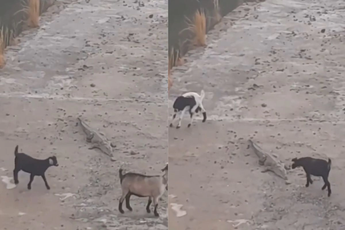 मगरमच्छ के द्वारा किए जा रहे बकरी के शिकार वाले वीडियो को सोशल मीडिया प्लेटफॉर्म एक्स पर अपलोड किया गया है.