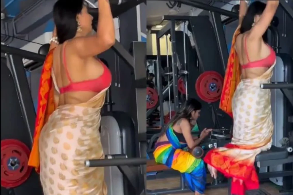 बिना ब्लाउज के जिम करती लड़की का Viral Video