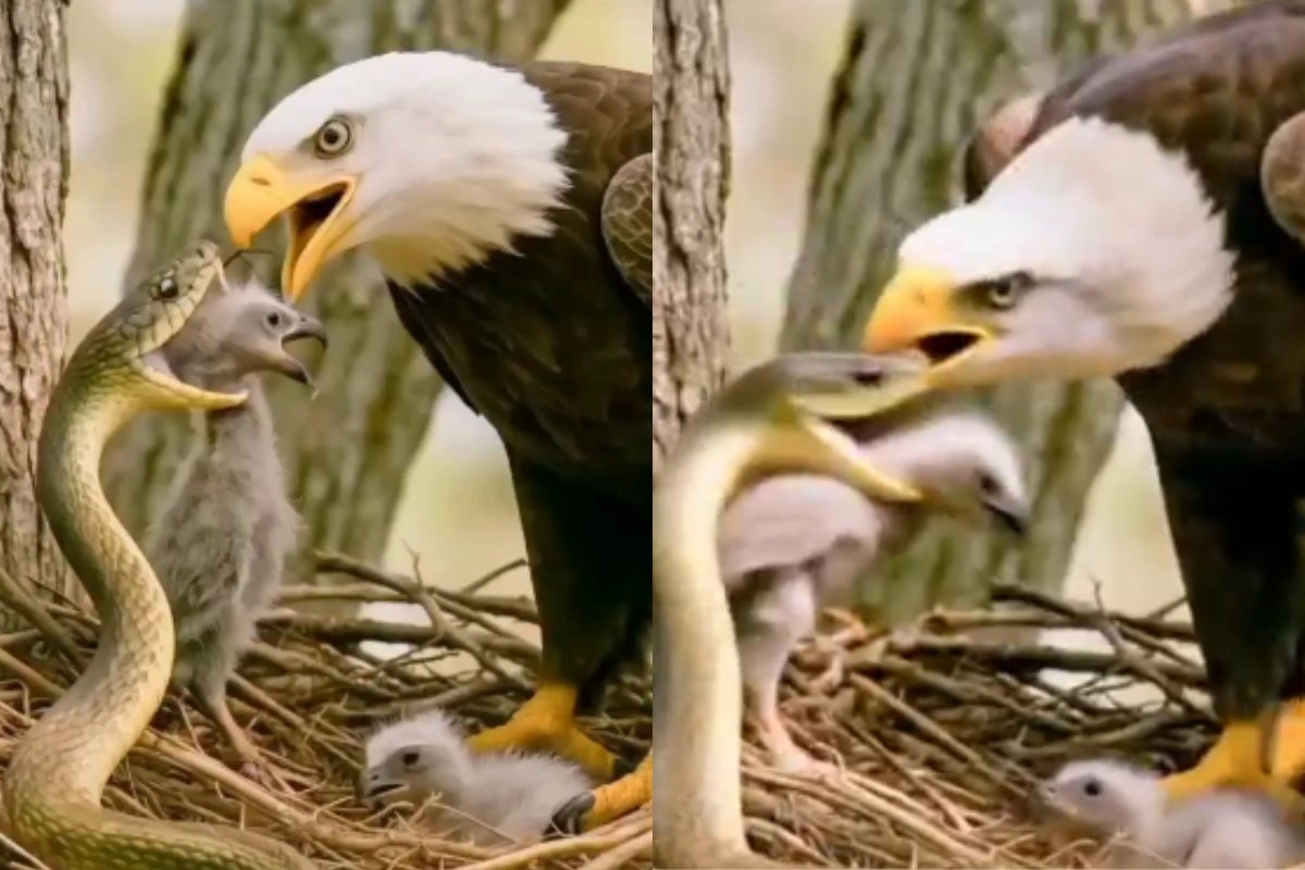 Viral Video: बच्चों पर जब कोई आफत आती है तो इंसान हो या फिर कोई जानवर हो दोनों ही दहल उठते हैं और अपने बच्चों को बचाने के लिए जुट जाते हैं। शायद यही वजह है कि, इन्हें ईश्वर के बाद दूसरा दर्जा दिया गया है। Social Media पर एक ऐसा ही दिल को छू लेने वाला वीडियो वायरल हो रहा है। इसमें एक चील अपने बच्चों को सांप से बचा रही है। सांप जिस तरह से उसके बच्चों को खाने के लिए घोंसले में घुसा हुआ है और लगभग मुंह में डालने ही वाला होता है, तभी चील कुछ ऐसा करती है, जिसकी वजह से शिकारी को वहां से भागना पड़ जाता है।
