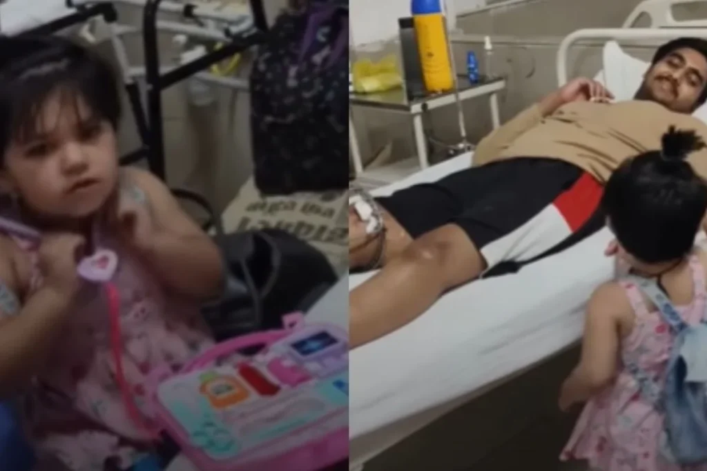 इंस्टाग्राम से शेयर Viral Video में बच्ची अपने पिता से मिलने पहुंची अपना खुद का मेडिकल किट लेके पहुंची जो बच्चों के खेलने के लिए होता है। हॉस्पिटल पहुंच कर बच्ची ने हूबहू डॉक्टर की तरह अपने पिता का चेकअप किया और उन्हें अपने खिलौना इंजेक्शन से टीका भी लगाया और बताया कि वो जल्दी ठीक हो जायेगे। इसके अलावा अस्पताल में मौजूद अन्य पेशेंट के पास भी जाकर बच्ची ने अपनी डॉक्टरी का क्यूट नमूना पेश किया। वायरल वीडियो में में देखा जा सकता है कि अस्पताल में मौजूद मरीजों के चेहरे पर बच्ची ने मुस्कान बिखेर दी।