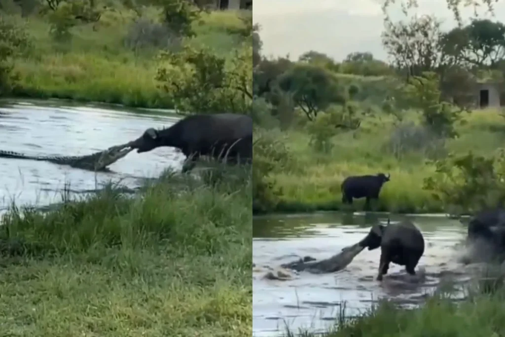 Viral Video: सोशल मीडिया पर एक भैंसे और मगरमच्छ का वीडियो वायरल हो रहा है। इस वीडियो में भैंस हैरत्ंगेज तरीके से खुद को निवाला बनने से बचा लेता है।