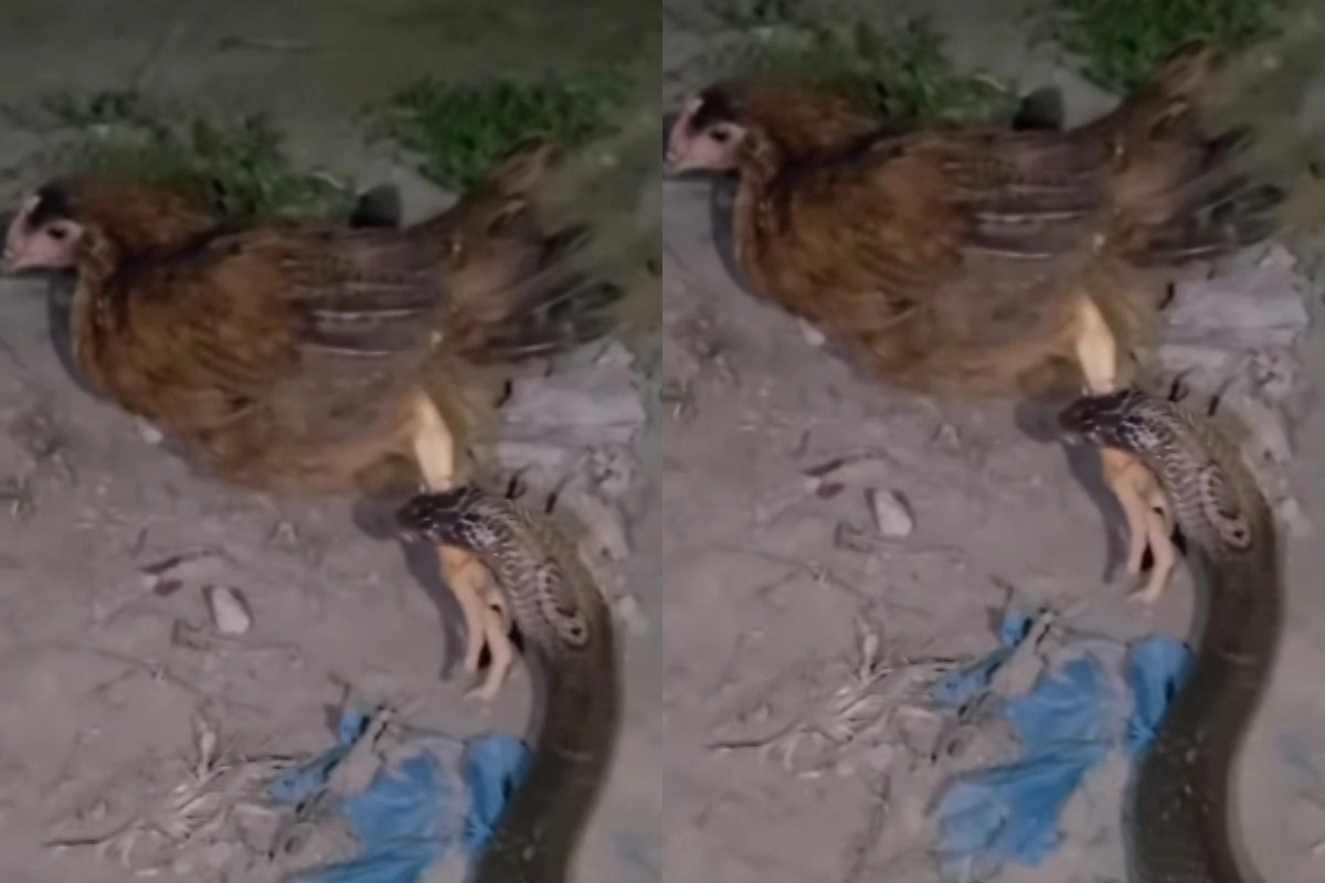 वीडियो चंद सेकंड का है। इसमें देखा जा सकता है कि, एक सांप ने अपने जहरीले दांतों से मुर्गी की टांग पकड़ी हुई है और उसे चबा रहा है। इस दौरान वो खुद को बचाने की कोशिश कर रही है। लेकिन खूंखार शिकारी उसे जरा भी छोड़ना नहीं चाहता है। वीडियो में शर्मनाक बात ये है कि, वीडियो रिकॉर्ड करने वाला बड़ी ही क्रूरता से इसे रिकॉर्ड कर रहा है। वो चाहता तो मुर्गी को बचा सकता था। लेकिन मुर्गी को बचाने से बेहतर उसने वीडियो रिकॉर्ड करना समझा।
