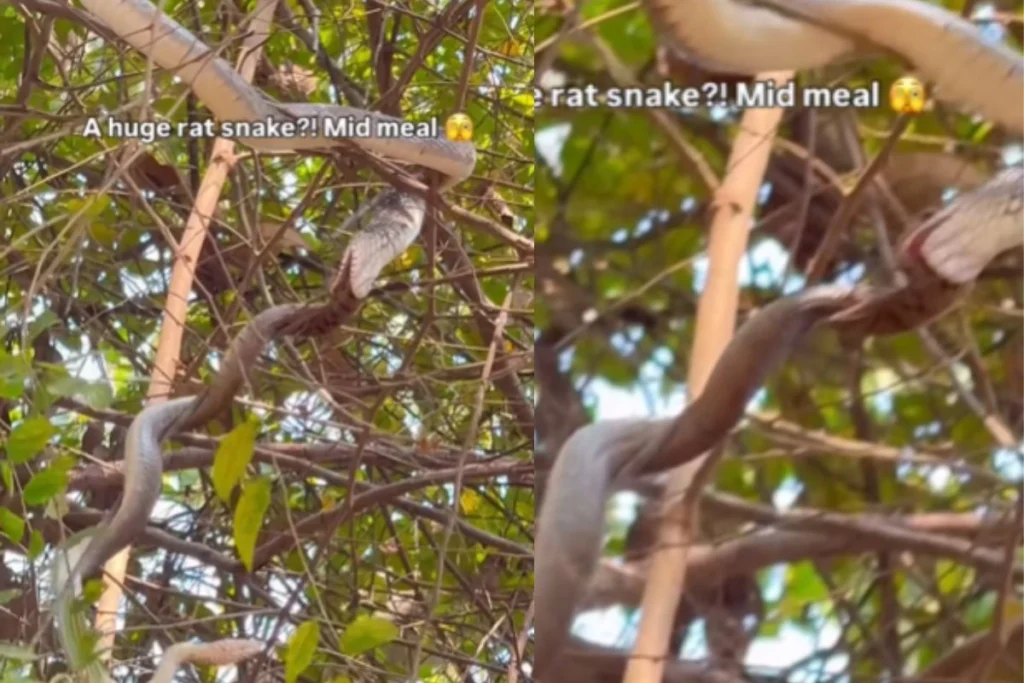सांप को निगलते स्नैक का हैरतअंगेज वीडियो