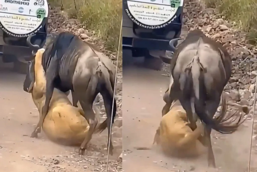 विल्डबीस्ट ने शेर की हालत की खराब