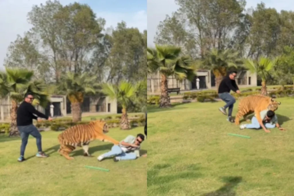 आलम यह होता है कि एक ही अटैक में उस शख्स की बोलती बंद हो जाती है और वह जमीन पर गिर जाता है। उसके बाद उसे बचाने के लिए उसके दोनों दोस्त वहां आते हैं लेकिन वह टाइगर उस शख्स को अपने चंगुल में लिए हुए नजर आ रहा है और वह उसे छोड़ने के मूड में नहीं है। कहना गलत नहीं होगा कि मासूम जानवर के साथ पंगा लेना उस शख्स को गाड़ी पड़ा और नानी याद आ गई।