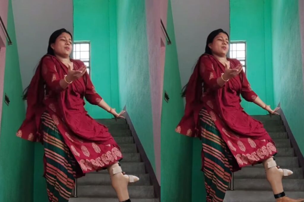 आर्टिफिशियल पैर में ठुमके लगा रही लड़की