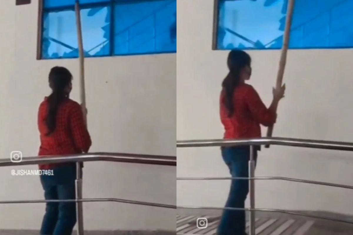 वो कॉलेज के शीशों पर पत्थर चला रही है और डंडे भी मार रही है. लड़की काफी गुस्से में है. आस-पास कुछ लोग मौजूद हैं, लेकिन उसे रोकने की किसी ने भी कोशिश नहीं की है, बल्कि वो उसकी वीडियो बना रहे हैं. लड़की सीढ़ियों पर इधर से उधर दौड़ रही है और एग्जाम हॉल में तीन मिनट लेट होने पर एंट्री ना मिलने से गुस्से में आ गई है. कॉलेज प्रशासन की तरफ से भी इस वक्त लड़की पर कोई एक्शन नहीं लिया जा रहा है.