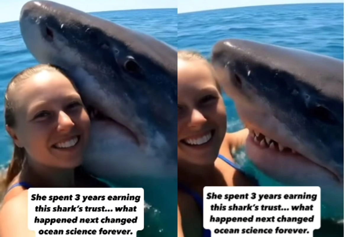 शार्क मछली ने लड़की पर लुटाया प्यार