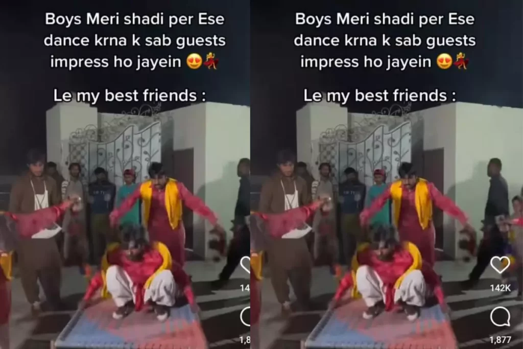 वीडियो पर कैप्शन दिया गया है कि जब मेरी शादी हो तो इस तरह से मेरी शादी में डांस करना ताकि सारे मेहमान इंप्रेस हो जाएं तो मेरे दोस्त इस तरह से नाचते हैं। यह वीडियो काफी वायरल हो रहा है। लोग इस पर काफी फनी कमेंट्स भी कर रहे हैं। द नेटिव लायनेस नाम की आईडी से कमेंट किया गया है जिसमें लिखा है कि नागिन डांस को टक्कर देने आ गया है सरकायलो खटिया डांस। तुषार गावरे आर्टिस्ट की आईडी से कमेंट किया गया है जिसमें लिखा है कि फाइनली बिना पेट्रोल की गाड़ी आ गई। वहीं एक अन्य आईडी कायनात इरफान से लिखा गया है कि जरूर फैसलाबाद या गुजरानवाला है क्योंकि इन शहरों की हवा में कोई चरस घुली हुई है।