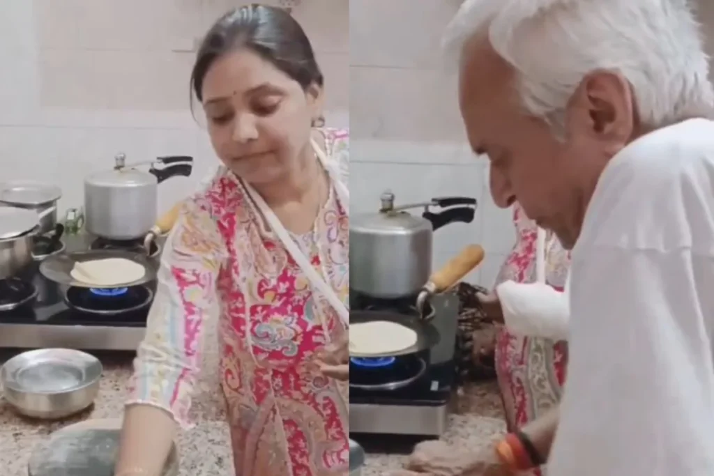 वायरल वीडियो की बात करें तो यहां आप देख सकते हैं कि बहू का एक हाथ टूटा हुआ है और ऐसे में वह आटे की लोई बना देती है और बुजुर्ग ससुर उसे बेलते नजर आ रहा है। इसके बाद तवे पर बहु रोटी पकाती हुई नजर आती है। वायरल वीडियो को शेयर करते हुए लिखा गया, “महिला का पति बाहर काम करता है सास नहीं है और इस महिला का हाथ टूट गया है तो खाना बनाने में ससुर मदद कर रहे हैं। ऐसा परिवार सबको नसीब नहीं होता है।”