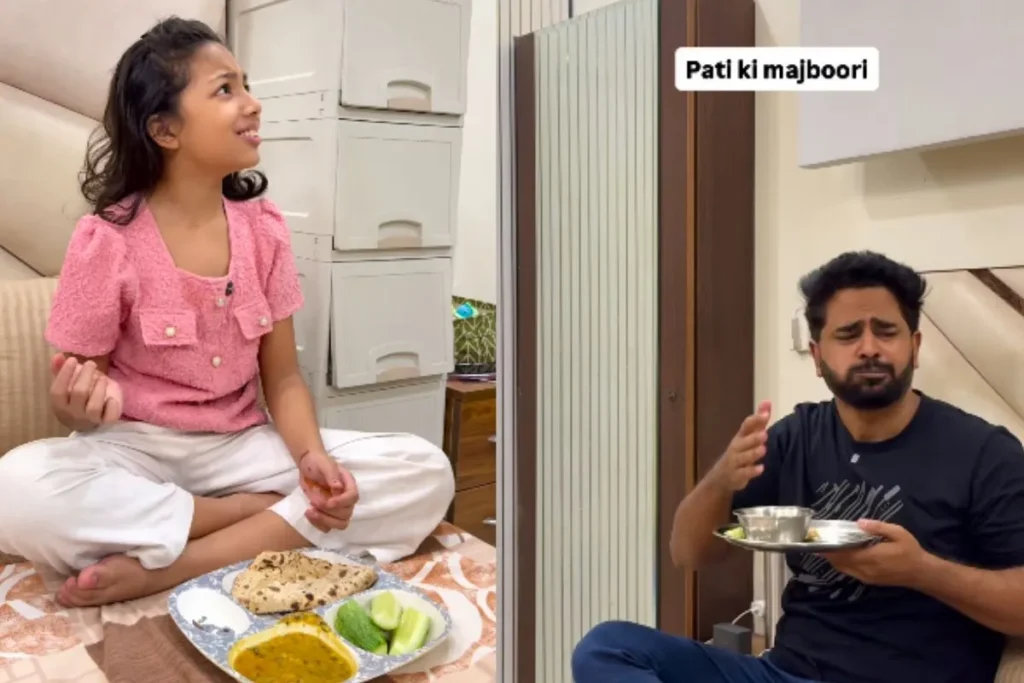वीडियो में देखा जा सकता है कि, एक महिला अपनी बेटी और पति को खाना खिला रही है. लेकिन ती बेटी को दाल में नमक बहुत ज्यादा तेज लगता है और वो सबके बारे में अपने माता-पिता से बोलती है. लेकिन तभी उसका पिता बोलता है कि, बेटी अभी तेरी शादी नहीं हुई है, इसलिए स्वाद लग रहा है. ये जानने के बाद बेटी को यकीन नहीं होता है. वहीं, महिला गुस्से से अपनी पति को देखने के लग जाती है. आपको बता दें, ये वायरल वीडियो रियल नहीं बल्कि रील है. इसे कंटेन्ट क्रिएटर ने लोगों के मनोरंजन के लिए बनाया है.