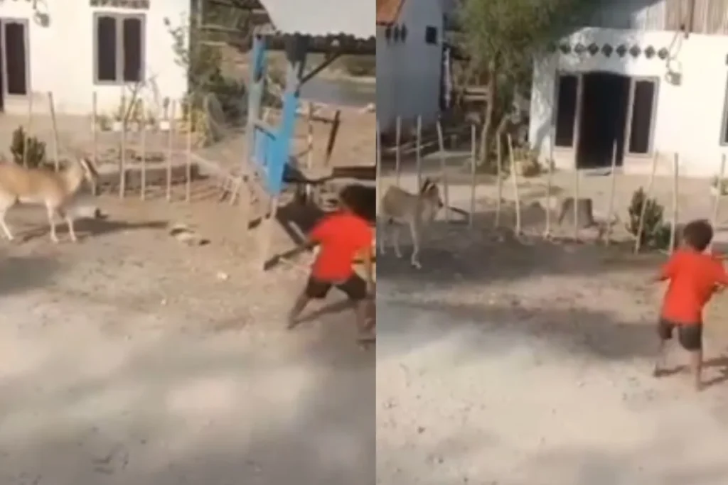 Viral Video में बकरी को आया बच्चे पर गुस्सा