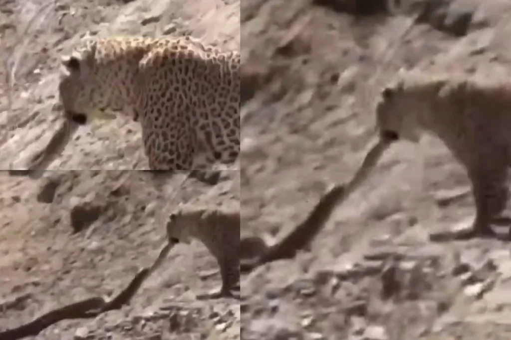 तेंदुए ने अजगर सांप को हैरतअंगेज तरीके से बनाया निवाला