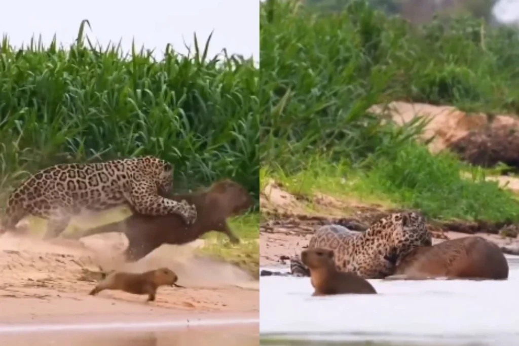 वीडियो में देखा जा सकता है कि, एक तेंदुआ पानी में छिपकर कैपीबारा को उसी के बच्चे के सामने शिकार बना लेता है। वो पानी में खींचकर उसे ले जाता है। इस दौरान बच्चा वहां से भागता नहीं है, बल्कि वो इतना ज्यादा डर जाता है कि, बेबस होकर अपनी मां को तलाशना शुरु कर देता है। बच्चे के सामने ही उसकी मां मर चुकी है। लेकिन अभी भी उसकी आंखएं अपनी मां को ढूंढ रही हैं। बच्चे की ये मासूमियत दिल को छू लेने वाली है।