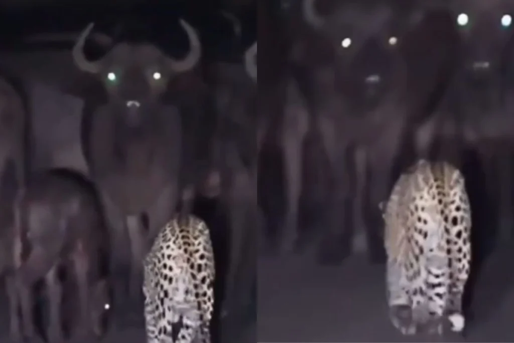 लेकिन इसे Social Media प्लेटफॉर्म एक्स पर काफी देखा जा रहा है। वीडियो रात का है। इसमें देखा जा सकता है कि, एक तेंदुए बेफिक्र होकर कैट वॉक करते हुए भैसों के झुंड में घुस जाता है और मौका देखते ही उनके सामने ही बच्चे पर हमला करके उसे वहां से ले जाता है। जब ये घटना घटती है तो सभी भैंसे बेबस होकर देख रहे होते हैं, अमूमन ऐसा बहुत ही कम देखने को मिलता है।तेदुए का शिकार करने का अंदाजा काफी अनोखा है।