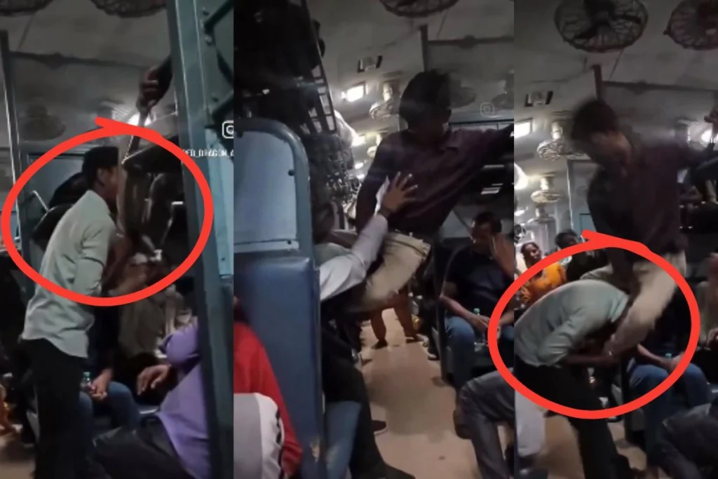 ट्रेन में अचानक एक-दूसरे को पीटते हुए काटने लगे दो युवक