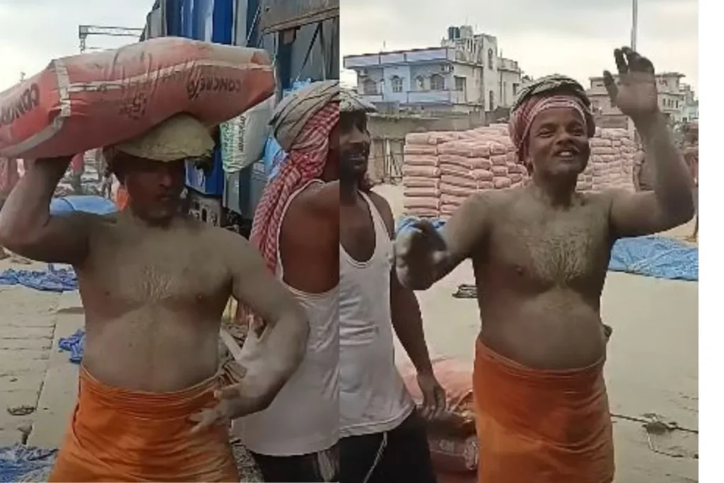 इस Viral Video में देखा जा सकता है कि, एक आदमी गमछा लपेटे हुए बोरी उठाने वाली लाइन में लगा हुआ है। इस दौरान वह स्त्री 2 (Stree 2) फिल्म के सुपरहिट गाने “झूठी खाई थी कसम जो निभाई नहीं (Jhuthi Khayi Thi Kasam Jo Nibhayi Nahi)” पर झूम रहा है। आदमी बहुत ही खुश लग रहा है और बहुत ही खुशी-खुशी से काम भी कर रहा है। वीडियो में इस मेहनतकश आदमी की जिंदादिली साफ देखी जा सकती है। यही वजह है कि, इस वीडियो को देख यूजर्स आदमी को सलाम कर रहे हैं।
