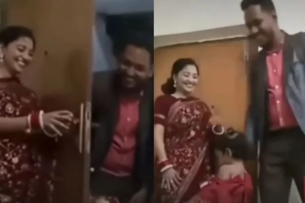 वायरल वीडियो की बात करें तो यहां आप देख सकते हैं कि छोटी सी बच्ची और उसकी मां साड़ी पहनकर तैयार रहती है। बीवी दरवाजे के पीछे छिप जाती है और शख्स के लिए दरवाजा खोलती है। घर में आते ही अपनी बेटी और बीवी को साड़ी में देखकर युवक का दिल धड़कता है और वह जिस तरह से रिएक्ट करता है वह उसकी खुशी को बयां करने के लिए काफी है। वायरल वीडियो आपको भी इमोशनल कर देगा जहां आप देख सकते हैं कि पिता किस तरह से रिएक्ट करता है।