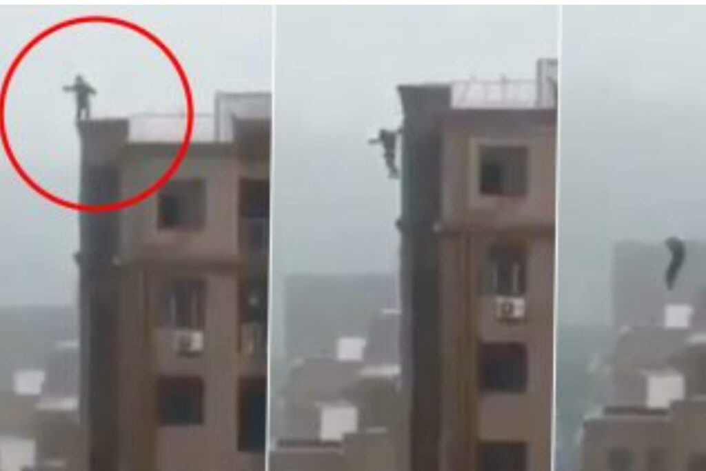 वीडियो में साफ देखा जा सकता है, कि एक युवक बिल्डिंग की सबसे टॉप फ्लोर पर चढ़कर किसी से फोन पर बातें कर रहा है। ऐसे में उसने अचानक से छलांग लगाई या फिर उससे कोई गलती हो गई और फिर वह गिर गया? इस बात की भी जानकारी नहीं मिली है।
