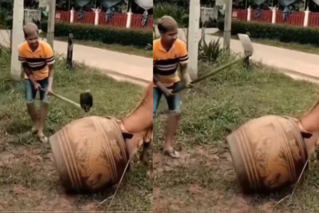 इसके साथ ही कैप्शन में लिखा है, “इसी लिए लोग कहते हैं भरोसा रखो। ” वीडियो में देखा जा सकता है कि, गाय की गर्दन जब घड़े में फंस जाती है तो वो तड़प उठती है। गाय को परेशान देख आदमी एक फावड़े से घड़े पर बार-बार वार करता है और मिट्टी के घड़े को फोड़ देता है। इस तरह वो गौ माता की जान बचा लेता है। अब इसी घटना का वीडियो काफी वायरल हो रहा है। इसे देखने के बाद यूजर्स ईश्वर का धन्यवाद कर रहे हैं।