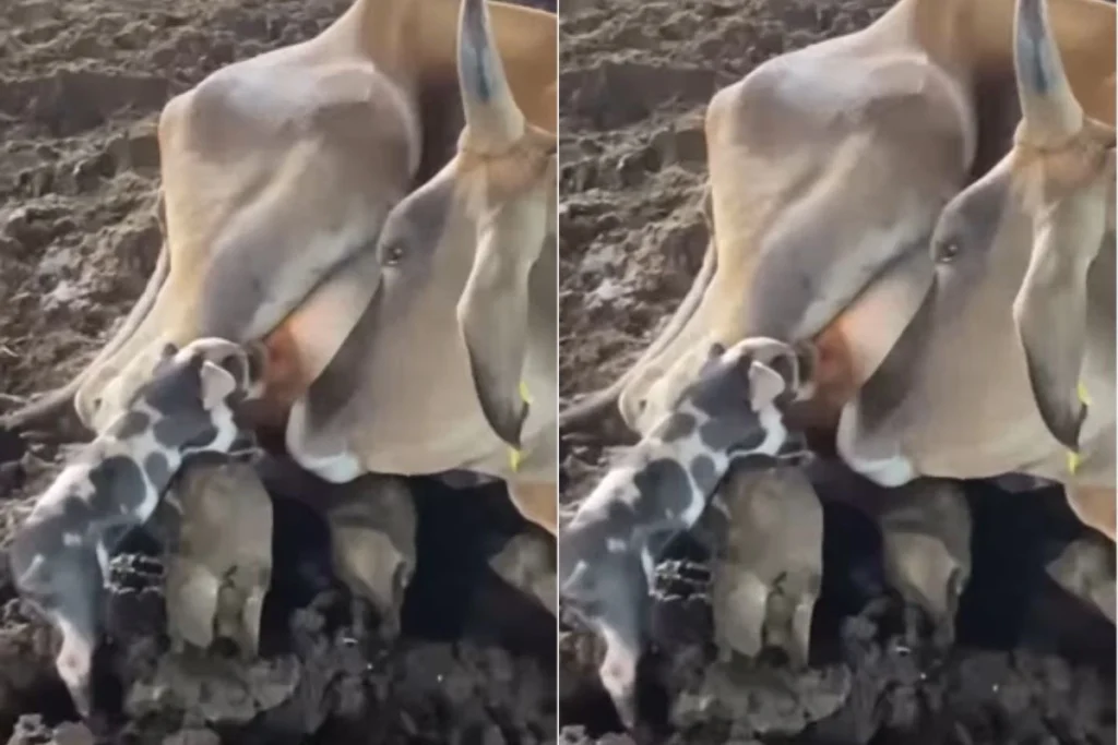 नन्हें भूखे सुअर के बच्चे को गौ माता ने पिलाया अपना दूध