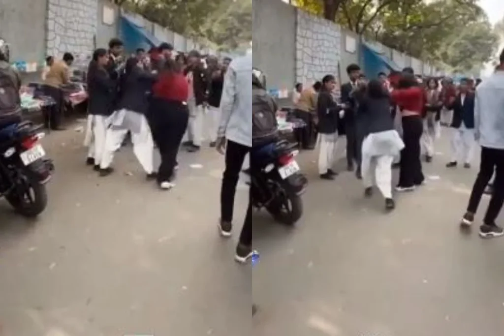 Viral Video में लड़के के लिए भीड़ गईं स्कूली बच्चियां
