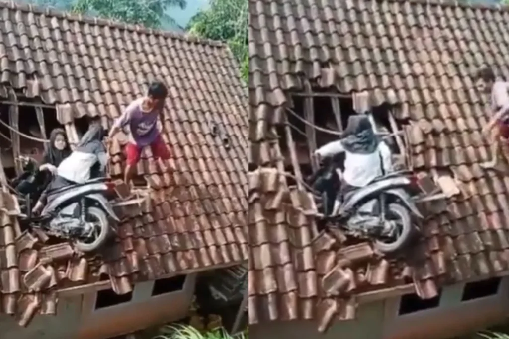 @jpsin1 एक अकाउंट से शेयर किए गए इस वीडियो के कैप्शन में कहा गया, “सोचिए यह एक्सीडेंट कैसे हुआ, वो स्त्री है, वो कुछ भी कर सकती है।” वीडियो में दो महिलाएं नजर आ रही है जो छप्पर के घर की छत पर स्कूटी लेकर चढ़ी हुई है। इस वीडियो को देखने के बाद लोग हैरान रह गए। कुछ लोगों का कहना है कि शायद घर बीच में आ गया लेकिन यूजर्स इस पर मजे लेने का एक मौका नहीं छोड़ रहे हैं। यह वीडियो मजेदार इसलिए भी है क्योंकि दोनों ही महिलाएं पूरी तरह सुरक्षित है और इस एक्सीडेंट में उन्हें कुछ भी नहीं हुआ। वीडियो में आप देख सकते हैं कि एक लड़के की मदद से महिलाओं को नीचे उतर जाता है।