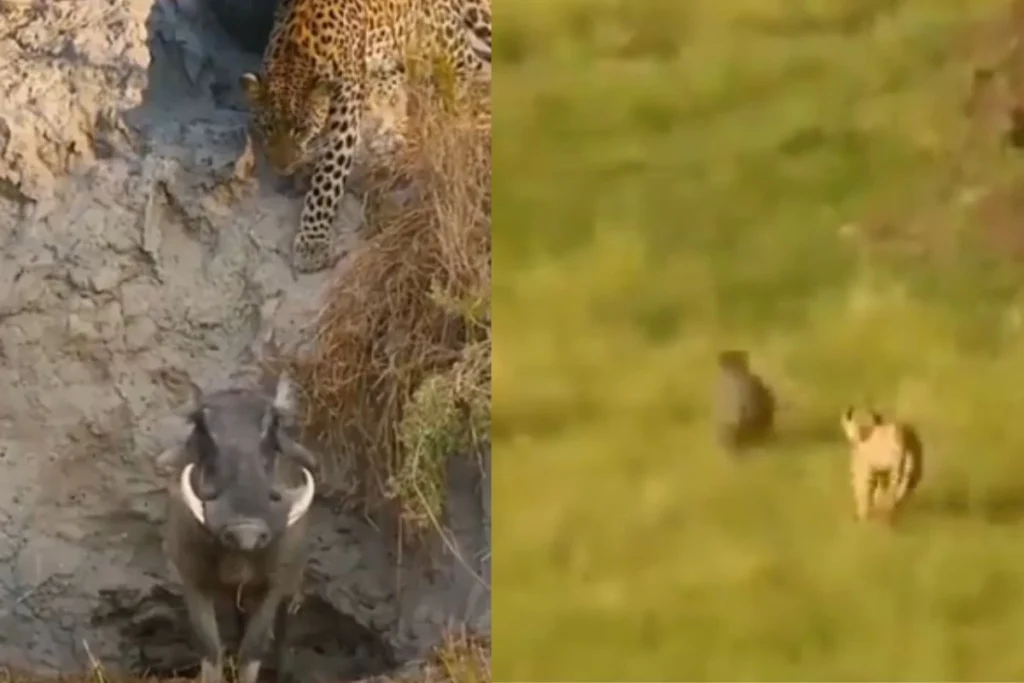 Viral Video: तेंदुआ अपनी रफ्तार और फुर्ती के लिए जाना जाता है। वहीं, जंगली सुअर अपने आप को हर माहौल में ढालने का हुनर रखता है। लेकिन क्या कभी आपने तेंदुए के छक्के छुटते हुए देखा है? अगर नहीं तो इस वायरल वीडियो में देख लीजिए। सोशल मीडिया पर जिंदगी और मौत की जंग का एक हैरतअंगेज वीडियो वायरल हो रहा है। इसमें जंगली सुअर ताक लगाकर खाने के लिए बैठे तेंदुए की हालत खराब कर देता है। ये वीडियो लोगों को सोचने पर मजूबर कर रहा है।