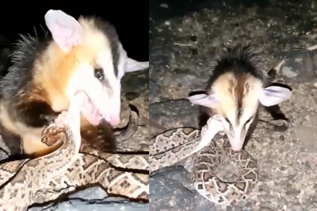 Viral Video: दुनिया के सबसे जहरीले सांपों में Rattle Snake की गिनती होती है। ये अगर किसी को एक बार डस ले तो उसकी जीवन लील चंद मिनटों में खत्म हो जाती है। लेकिन क्या कभी आपने इसी Saap को शिकार होते हुए देखा है? अगर नहीं तो इस वायरल वीडियो में देख लीजिए। सोशल मीडिया पर एक रैटल स्नैक और पॉसम की लड़ाई का वीडियो वायरल हो रहा है। इसमें जैसे ही सांप इस छोटे से जानवर पर हमला करने आता है वैसे ही वह उसे पकड़ लेता है और सांप का मुंह चीर देता है। इसके बाद वह उसे खाने लगता है।
