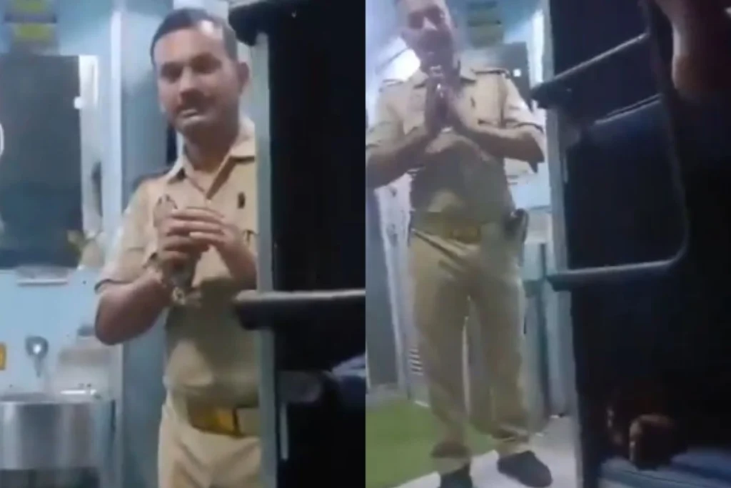 पीड़ित यात्री ने घटना का Video बनाया, इसमें सिपाही कान पकड़कर माफी मांगता दिख रहा है। सिपाही को सस्पेंड कर दिया गया है।” वीडियो में देखा जा सकता है कि, एक वर्दी पहने पुलिसवाला हाथ जोड़ते हुए माफी मांग रहा है। वहीं, लड़की उसकी वीडियो को रिकॉर्ड कर रही है। पुलिस वाले ने लड़की के साथ छेड़छाड़ की है। जिसकी वजह से वो वीडियो बना रही है। आस-पास अन्य यात्री भी देखे जा सकते हैं।