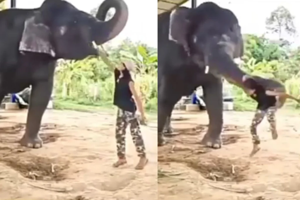 हाथी के मुंह में हाथ डालना लड़की को पड़ा भारी