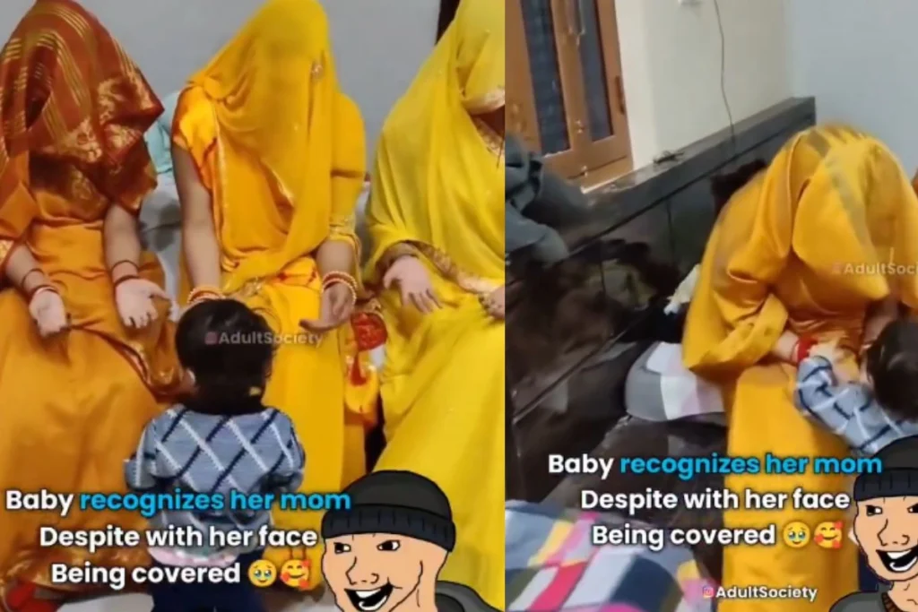 वीडियो में एक साथ कई सारी महिला पीले रंग की साड़ी पहनकर बैठी हुई हैं. इस दौरान सभी महिलाओं का चेहरा ढका हुआ है. तभी वहां पर एक छोटा सा बच्चा आता है और अपनी तरफ बुला रही सभी महिलाओं को देखने लग जाता है. दरअसल, ये बच्चा इन घूंघट डाली हुई महिलाओं में अपनी मां को तलाश रहा है. बच्चा एक-एक करके सभी महिलाओं के पास जाता है. इसके बाद वह अपनी मां को पहचान लेता है. अपने बच्चे की सिक्स सेंस को देख मां दंग हो जाती है. इसे साथ ही वहां पर मौजूद लोग भी चौंक जाते हैं.