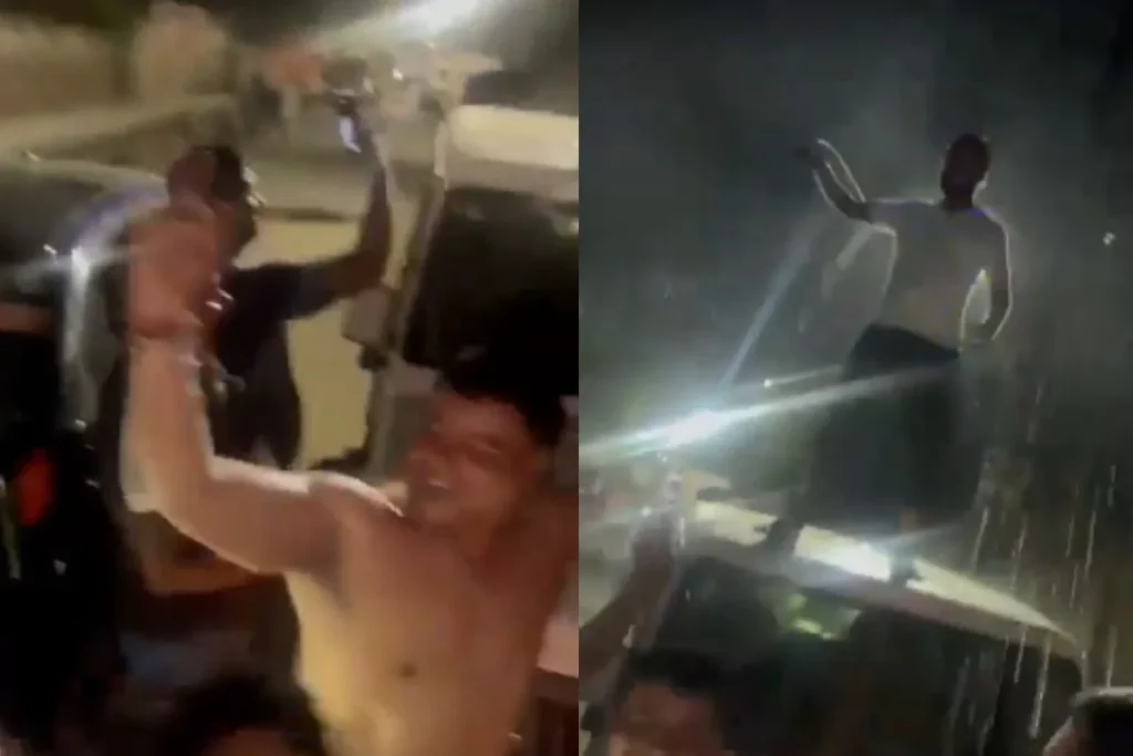 वीडियो में ये लड़के बीच सड़क रात में हंगामा काटते हुए नजर आ रहे हैं। इस वीडियो के साथ इस बात की जानकारी दी गई है कि ये लड़के अपने एक दोस्त का बर्थडे सेलिब्रेट कर रहे थे। लेकिन इस दौरान उन्होंने कुछ बेशर्मी भी दिखाई। दरअसल वीडियो में आप देखेंगे कि ये लड़के अर्धनग्न अवस्था में हैं और उन्हें किसी भी चीज की कोई चिंता नहीं है। वीडियो में आप देखेंगे कि गाड़ी पर सवार एक लड़का बियर को बीच सड़क उछाल रहा है और उसके दोस्त नीचे डांस कर रहे हैं।