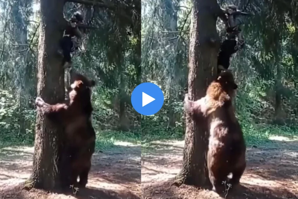 Viral Video: आए दिन सोशल मीडिया पर जानवरों से जुड़े अजीबो गरीब वीडियो देखने को मिलते हैं। ऐसे में एक और वीडियो सोशल मीडिया पर खूब तेजी से वायरल हो रहा है। लोगों की होश उड़ाने वाली ये वीडियो आज सभी को हैरान कर रहा है। जी हां, सोशल मीडिया पर एक वीडियो वायरल हुआ है जिसमें दिनदहाड़े जंगली भालू एक शख्स के पीछे पड़ गया है। वहीं व्यक्ति भालू से अपनी जान बचाते पेड़ पर चढ़ रहा है। मगर आगे जो हुआ वो शायद आपको बेहद हैरान कर देगी। तो आइए आर्टिकल में जानते हैं इस वीडियो में आगे क्या हुआ।