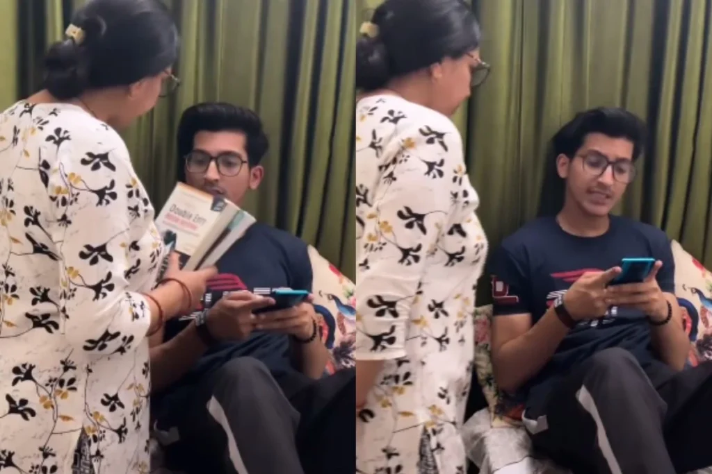 जहां तक इस वीडियो की बात करें इसमें बेटे का नाम अंशु है। मां अपने बेटे को आवाज लगाती है जो आराम से हाथ में मोबाइल लेकर बिस्तर पर बिजी है और वह अपनी मां की तरफ बिना देखे हुए जवाब देता है। उसके बाद मां कहती है कि ‘यह 3000 की बुक ले रखी है इनको कभी खोलकर भी देख लिया कर।’ जिस पर बेटा जवाब देता है ‘यह 50000 का फोन ले रखा है इसको चैन से भी चलाने दिया करो।’ बस क्या था मां ने लगाया जोरदार तमाचा।