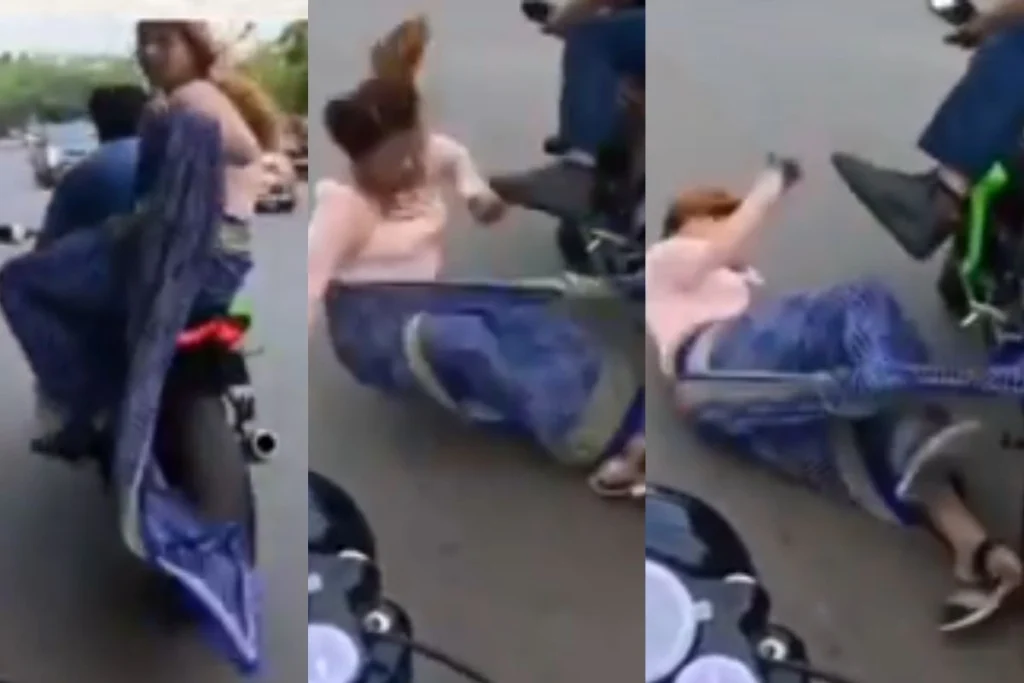 वीडियो में देखा जा सकता है कि, एक लड़की मोटरसाइकिल पर बैठकर जा रही है। इसका पल्लू पहिए में आने ही वाला होता है। जिसे देखकर पीछे से आ रहा बाइक सवार रोकने की कोशिश करता है वो मना करता है। लेकिन लड़की उसे एटिट्यूड दिखाते हुए इग्नोर करती है। इसके बाद अचानक से उसका पल्लू बाइक में फंस जाता है और वो धड़ाम से जमीन पर आकर गिरती है। इस तरह लड़की की सारी अक्ल ठिकाने लग जाती है।