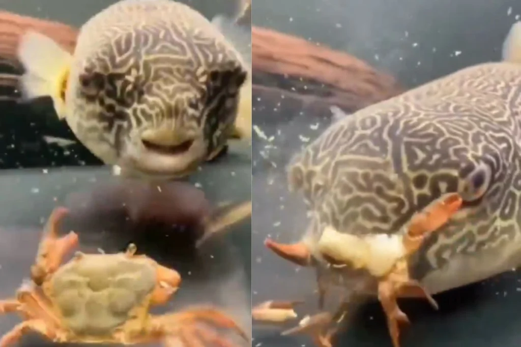 मछली ने हैरतअंगेज तरीके केकड़े को बनाया शिकार