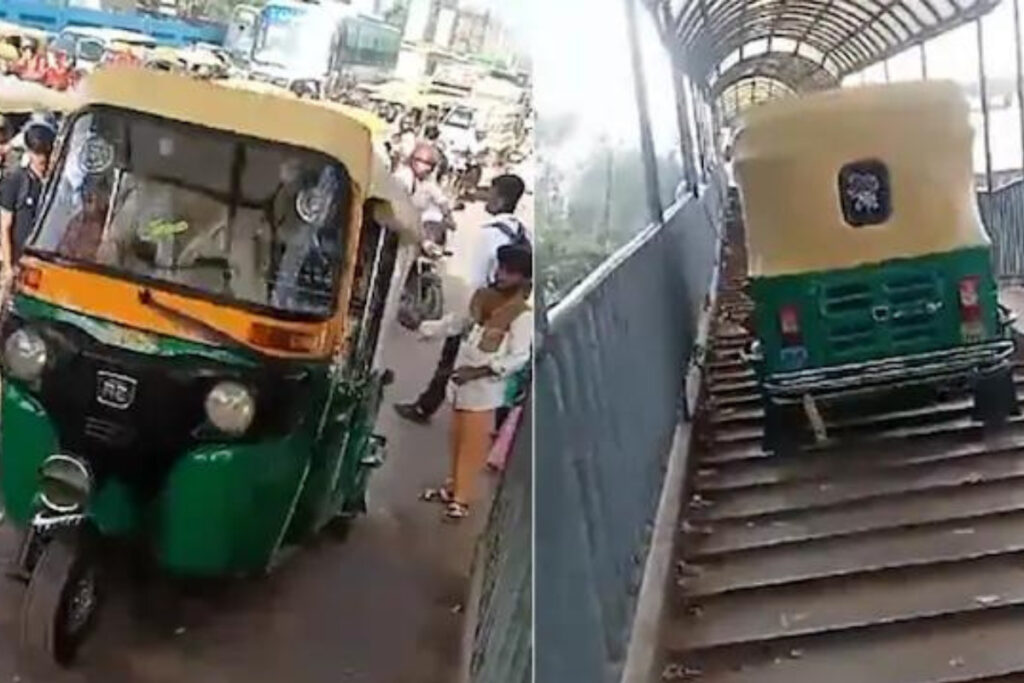 ट्रैफिक से बचने के ऑटो ड्राइवर ने चढ़ा दी फुटओवर ब्रिज पर गाड़ी