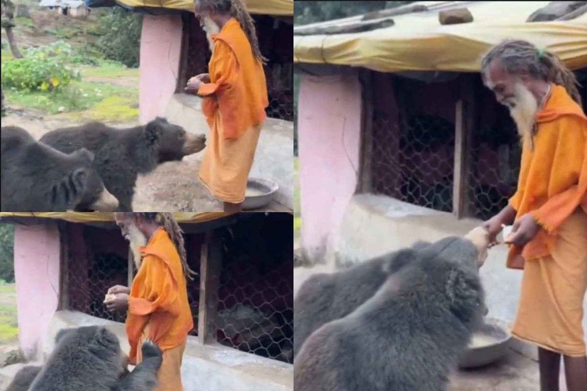 साधु बाबा ने खूंखार भालुओं पर लुटाया प्यार