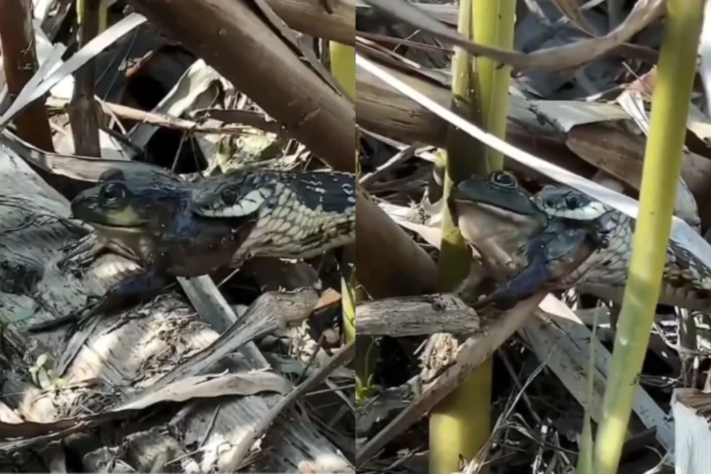 सांप ने हैरतअंगेज तरीके से मेंढक को निगला