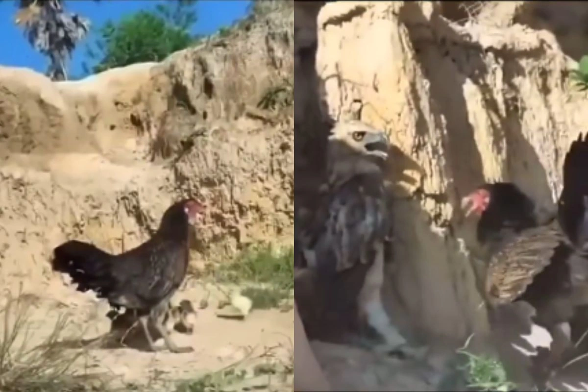 मुर्गी और बाज की हैरतअंगेज लड़ाई कैमरे में कैद
