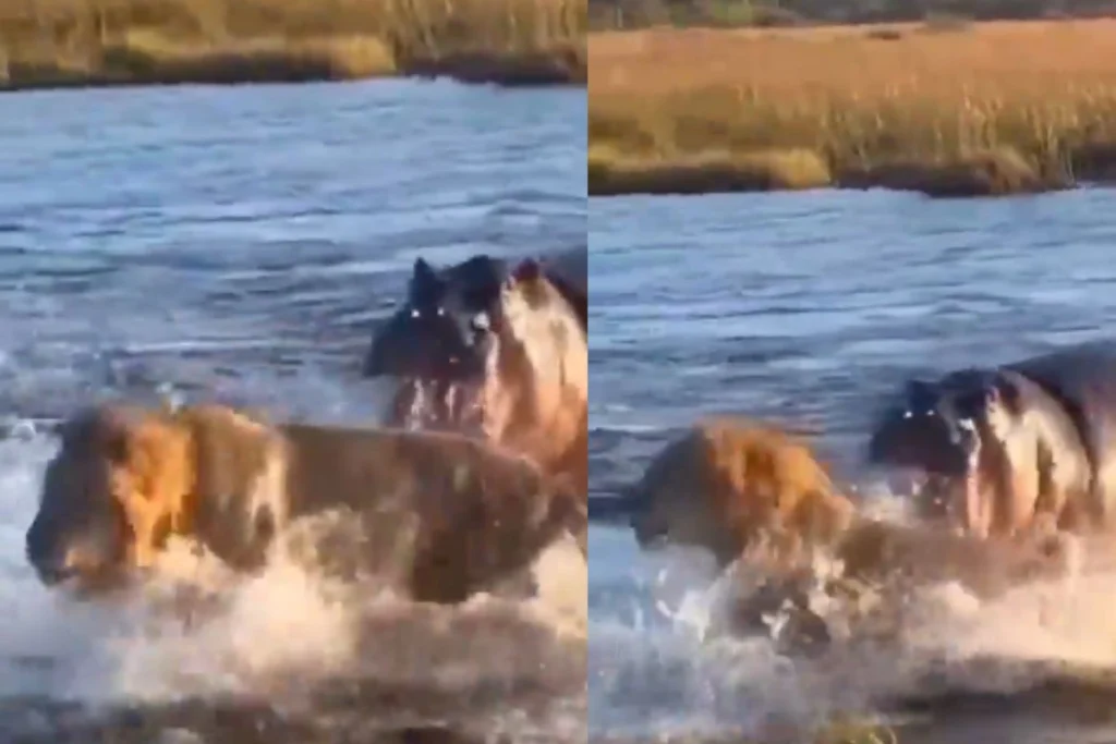 ये वायरल वीडियो PREDATOR VIDS नाम के एक्स हैंडल से पोस्ट किया गया है। वीडियो में देखा जा सकता है कि, दो बड़े शेर पानी में घूम रहे हैं। लेकिन तभी अचानक से उनके पीछे हिप्पोपोटामस यानी की दरियाई घोड़ा पड़ जाता है।