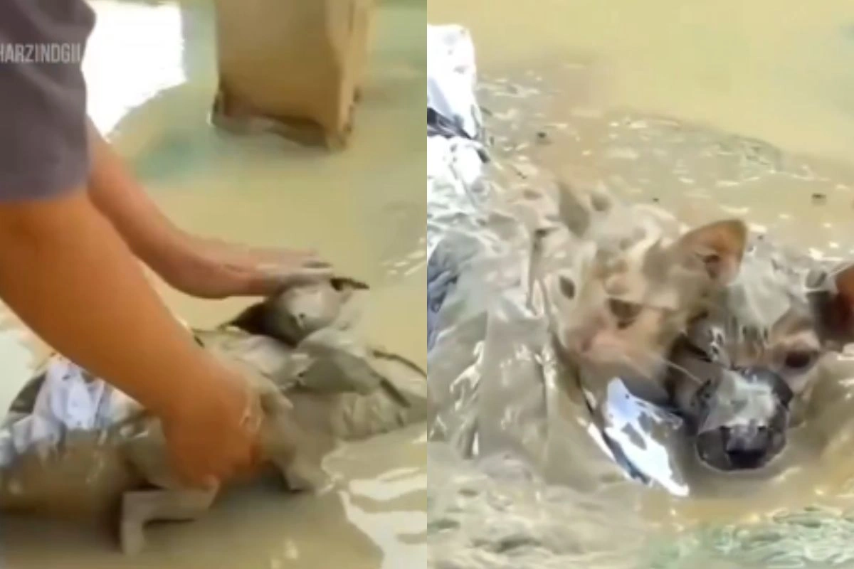 इस Viral Video में कुछ दरिंदों ने बेजुबानों के मुंह में काला टेप लपेटकर उन्हें पन्नी में बांधकर मरने के लिए कीचड़ में छोड़ दिया।