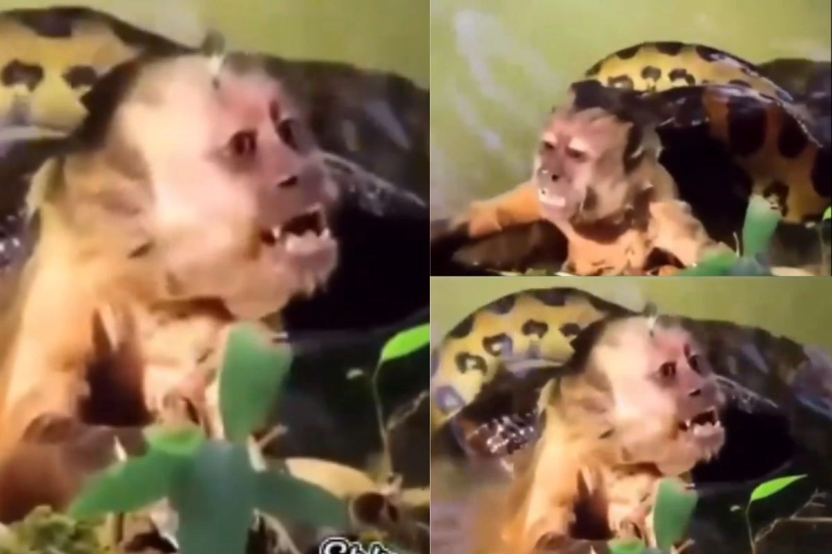 सांप की जगड़ से बंदर के बचने का हैरतअंगेज वीडियो