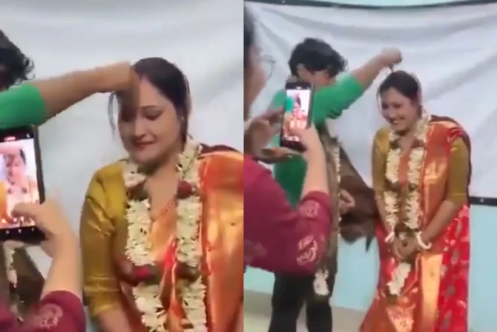 Viral Video: सोशल मीडिया पर एक महिला का वीडियो वायरल हो रहा है। इसमें वह अपने से कम उम्र के लड़के से मांग भरवा रही है।ये वायरल वीडियो Maulana Abul Kalam Azad University of Technology, West Bengal का बताया जा रहा है। MAKAUT के इस वायरल वीडियो को सोशल मीडिया प्लेटफॉर्म X पर काफी वायरल किया जा रहा है। महिला शिक्षिका की मांग भरते स्टूडेंट के वीडियो को लोग सनसनीखेज बनाकर पेश कर रहे हैं। लेकिन अब इस वीडियो की सच्चाई सामने आ गई है।